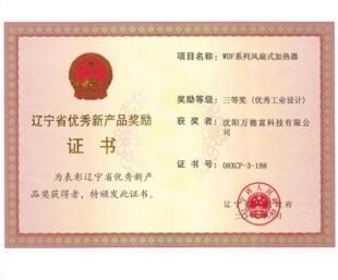遼寧省優(yōu)秀新產(chǎn)品獎勵證書